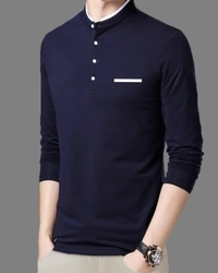 FastColors Solid Men Mandarin Collar White, Blue T-Shirt