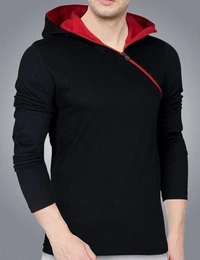 Seven Rocks Solid Men Hooded Neck Black T-Shirt